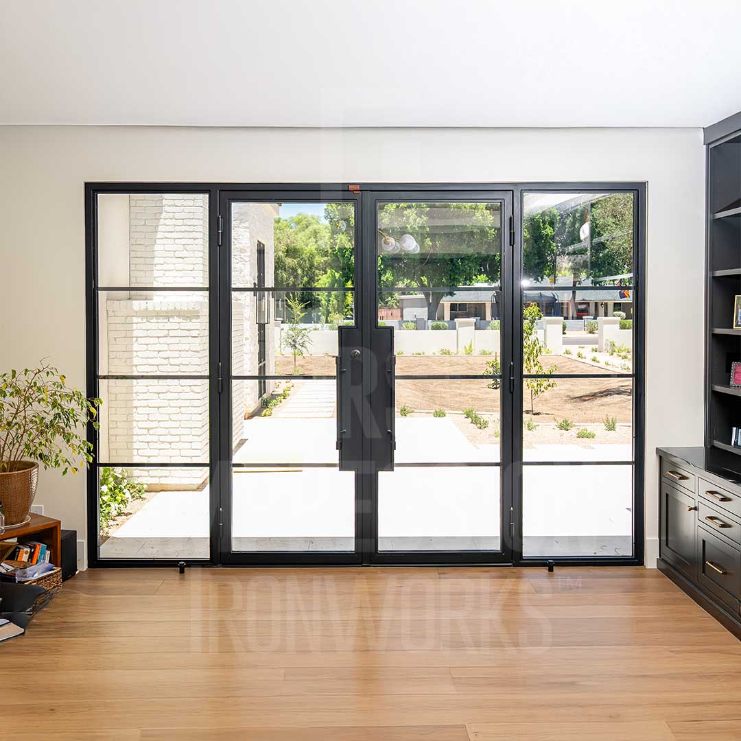 Desert Contemporary Iron Entry Door with Sidelights
