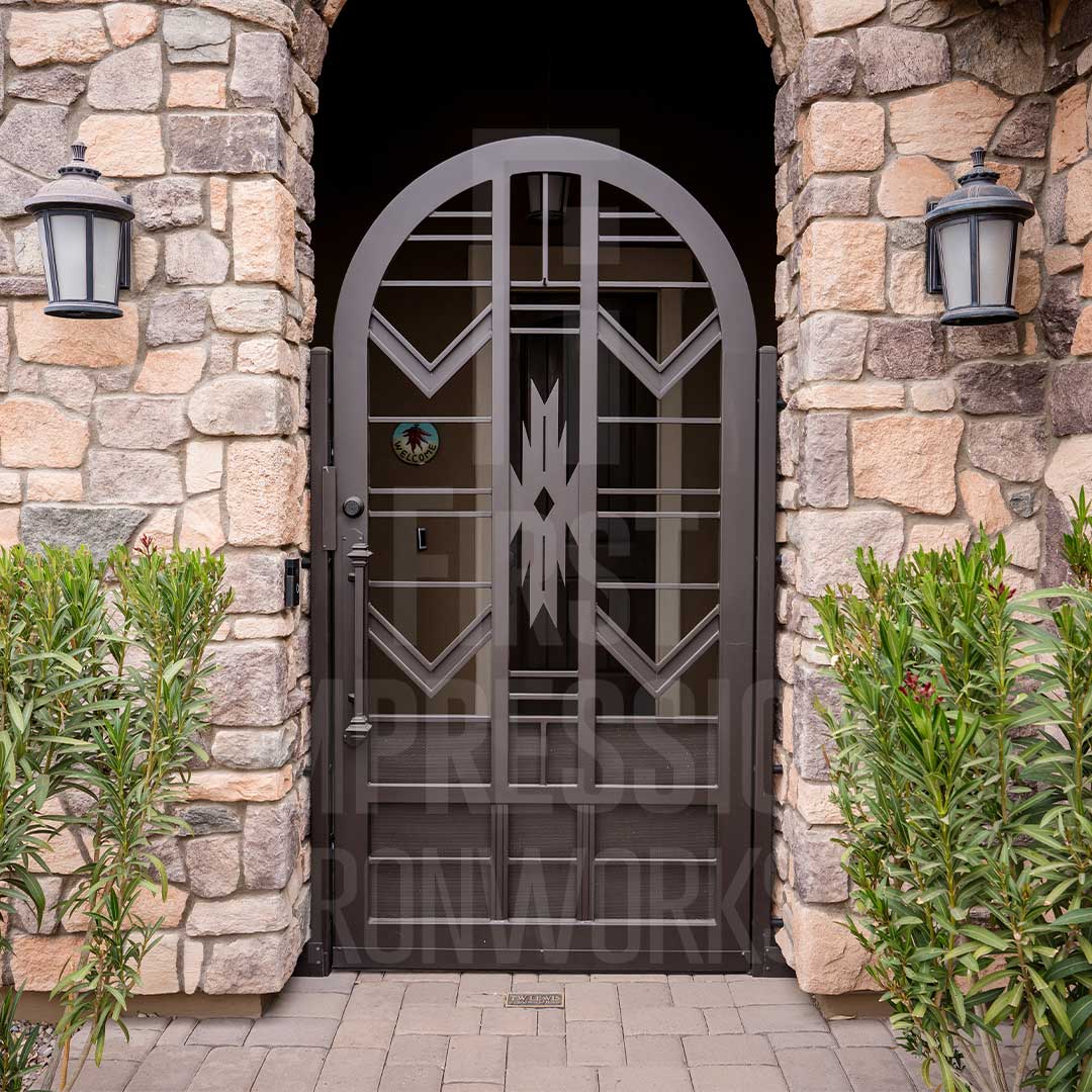Every Iron & Wood Gate from First Impression Ironworks is designed to provide security and beauty to your home, and is always custom built to your home’s specifications. Each gate is made in Arizona from the highest quality materials sourced here in the U.S.A., using only 100% American steel.  Each Iron Gate is crafted from the most robust steel and gate posts available, as well as a standard 10” steel latch and lock guard, name brand Kwikset or Schlage hardware is always included, and customization is available for whatever needs fit your home best. Our product line includes a customizable array of steel plate gates, iron and wood gates, wrought iron and glass, or timeless iron and redwood gates. You can choose your Iron Gate from a variety of styles such as Contemporary, Traditional and Tuscan, and with additional options such as arches or digital locks. Our design consultants are here to help – let us know how we can create a one-of-a-kind Iron Gate for your home today!