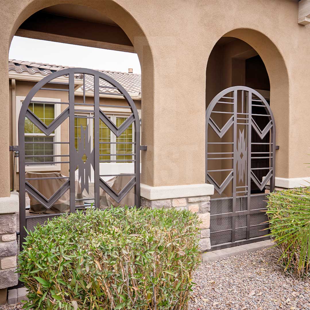 Iron Railings from First Impression Ironworks are crafted uniquely for your home. Our wrought iron railings are an investment that will add value to your home, since each railing is custom built to your home’s specifications and made from the highest quality materials. Each wrought iron railing, whether solid steel, horizontal iron railing, or wrought iron and wood railing, is expertly made in Arizona by our talented iron artisans. Our wrought iron is sourced here in the U.S.A., using only 100% steel. All iron railings are crafted from the strongest, most robust steel. We’re here to bring your dreams to life with customization available for whatever needs fit your home best, whether it’s iron gates, sunscreens, sidelights, transoms, or elegant iron hardware. Create the first impression you’ve always wanted for your home today with your vision and our expertise!