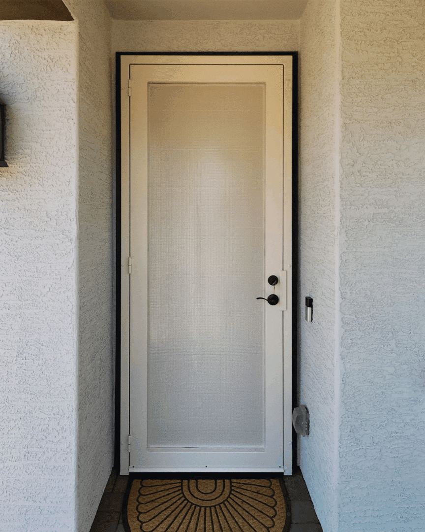 Make a dramatic statement at your Texas home with a custom Iron Security Screen Door from First Impression Ironworks. Designed for both elegance and protection, our doors offer superior security compared to traditional screen, storm, or security doors—while enhancing your home’s value. Each door is expertly handcrafted right here in the USA, and is thereby a 100% American-made steel product. Your door will be tailored precisely to your home’s specifications. Our 14-gauge steel doors feature a fully welded steel frame, durable iron pull handles, and a formidable 10-inch steel latch and lock guard for unbeatable security. Select from solid steel, steel with glass, or wrought iron and wood designs, all crafted to complement your home’s unique style and budget. Customize your security door with premium Kwikset or Schlage hardware, integrated alarm and monitoring systems, kick plates, removable sunscreens, powder-coated steel finishes and elegant iron detailing. With expert artistry and custom designs, we’re here to transform your entrance into a striking first impression. Let’s bring your vision.