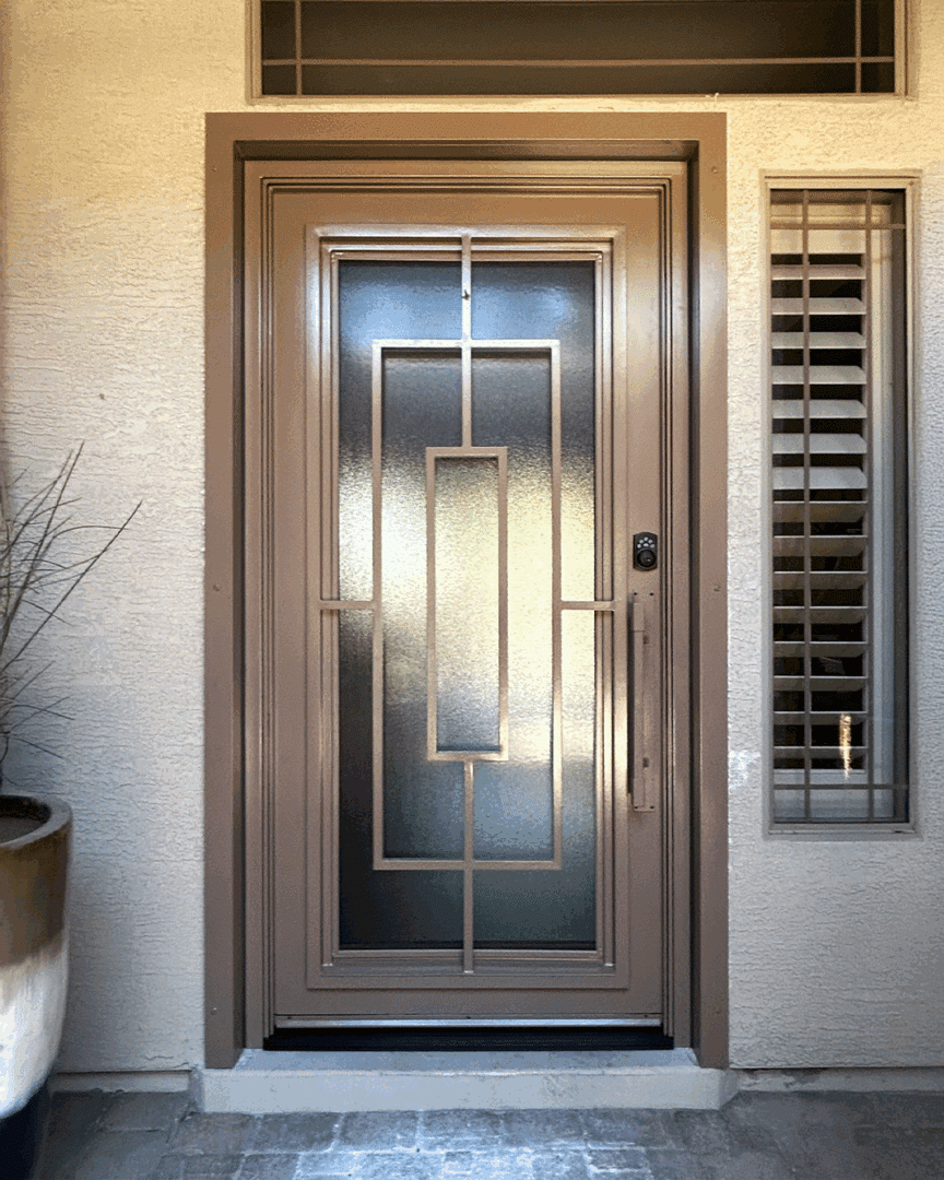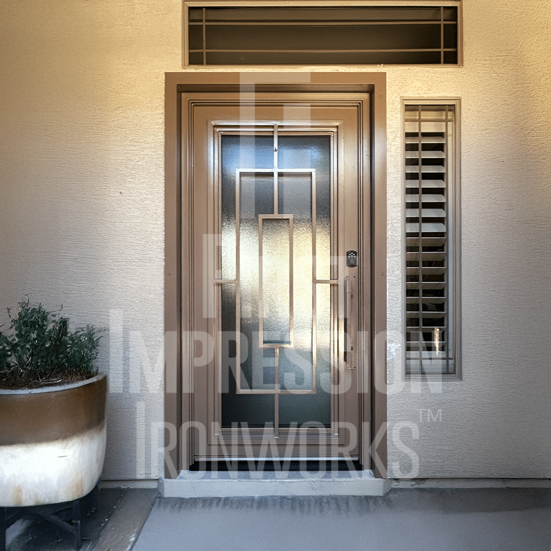 Enhance your Texas home’s entrance with a custom Iron Entry Door from First Impression Ironworks. Your door will be uniquely crafted to match your vision. Designed for lasting value, your steel entry door will be custom-built to your home’s specifications using the highest quality materials. Whether you choose solid steel, iron and glass, or wrought iron and wood, every door is expertly handcrafted in America by skilled artisans. Our doors are all 100% American-made steel products. Every entry door is constructed with the most durable steel, from the frame to the iron pull handles and the standard 10-inch steel latch and lock guard for superior protection. Premium Kwikset or Schlage hardware is always included, with options to upgrade to the latest security technology, including alarm and monitoring integration. Personalize your door with features such as removable sunscreens, sidelights, transoms, or elegant iron detailing. With expert craftsmanship and tailored designs, we bring your vision to life, ensuring a grand first impression for your home. Let’s create something exceptional together!