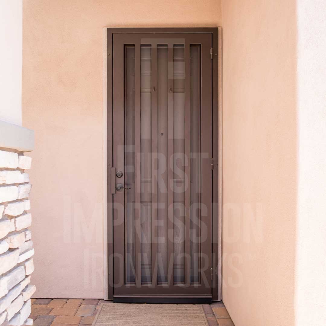 Make a dramatic statement at your Texas home with a custom Iron Security Screen Door from First Impression Ironworks. Designed for both elegance and protection, our doors offer superior security compared to traditional screen, storm, or security doors—while enhancing your home’s value. Each door is expertly handcrafted right here in the USA, and is thereby a 100% American-made steel product. Your door will be tailored precisely to your home’s specifications. Our 14-gauge steel doors feature a fully welded steel frame, durable iron pull handles, and a formidable 10-inch steel latch and lock guard for unbeatable security. Select from solid steel, steel with glass, or wrought iron and wood designs, all crafted to complement your home’s unique style and budget. Customize your security door with premium Kwikset or Schlage hardware, integrated alarm and monitoring systems, kick plates, removable sunscreens, powder-coated steel finishes, sidelights, transoms, and elegant iron detailing. With expert artistry and custom designs, we’re here to transform your entrance into a striking first impression. Let’s bring your vision.