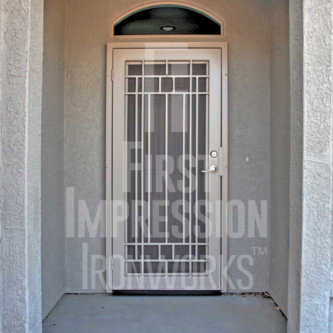 Make a dramatic statement at your Texas home with a custom Iron Security Screen Door from First Impression Ironworks. Designed for both elegance and protection, our doors offer superior security compared to traditional screen, storm, or security doors—while enhancing your home’s value. Each door is expertly handcrafted right here in the USA, and is thereby a 100% American-made steel product. Your door will be tailored precisely to your home’s specifications. Our 14-gauge steel doors feature a fully welded steel frame, durable iron pull handles, and a formidable 10-inch steel latch and lock guard for unbeatable security. Select from solid steel, steel with glass, or wrought iron and wood designs, all crafted to complement your home’s unique style and budget. Customize your security door with premium Kwikset or Schlage hardware, integrated alarm and monitoring systems, kick plates, removable sunscreens, powder-coated steel finishes, sidelights, transoms, and elegant iron detailing. With expert artistry and custom designs, we’re here to transform your entrance into a striking first impression. Let’s bring your vision.