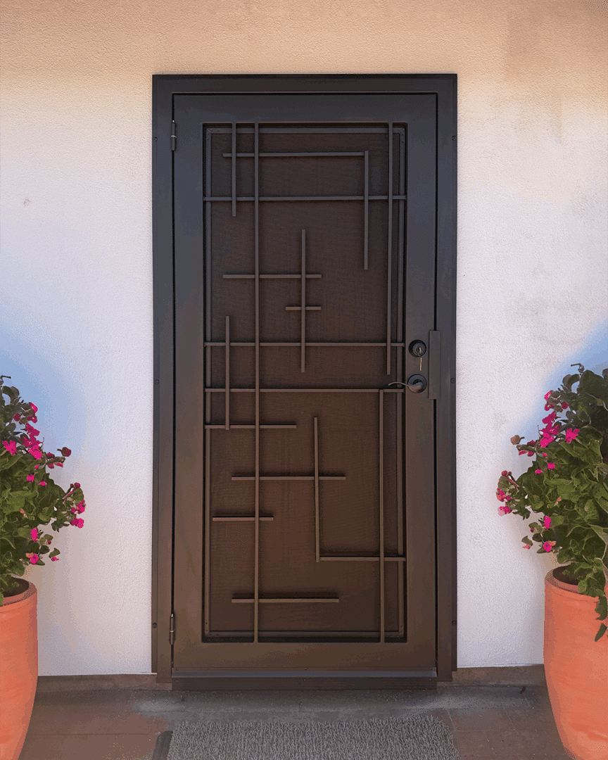 Make a dramatic statement at your Texas home with a custom Iron Security Screen Door from First Impression Ironworks. Designed for both elegance and protection, our doors offer superior security compared to traditional screen, storm, or security doors—while enhancing your home’s value. Each door is expertly handcrafted right here in the USA, and is thereby a 100% American-made steel product. Your door will be tailored precisely to your home’s specifications. Our 14-gauge steel doors feature a fully welded steel frame, durable iron pull handles, and a formidable 10-inch steel latch and lock guard for unbeatable security. Select from solid steel, steel with glass, or wrought iron and wood designs, all crafted to complement your home’s unique style and budget. Customize your security door with premium Kwikset or Schlage hardware, integrated alarm and monitoring systems, kick plates, removable sunscreens, powder-coated steel finishes, sidelights, transoms, and elegant iron detailing. With expert artistry and custom designs, we’re here to transform your entrance into a striking first impression. Let’s bring your vision.