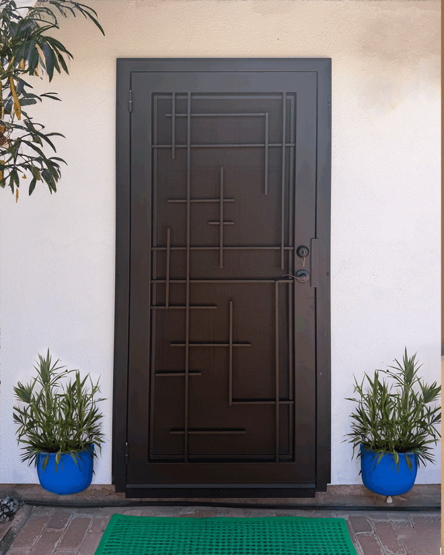 Make a dramatic statement at your Texas home with a custom Iron Security Screen Door from First Impression Ironworks. Designed for both elegance and protection, our doors offer superior security compared to traditional screen, storm, or security doors—while enhancing your home’s value. Each door is expertly handcrafted right here in the USA, and is thereby a 100% American-made steel product. Your door will be tailored precisely to your home’s specifications. Our 14-gauge steel doors feature a fully welded steel frame, durable iron pull handles, and a formidable 10-inch steel latch and lock guard for unbeatable security. Select from solid steel, steel with glass, or wrought iron and wood designs, all crafted to complement your home’s unique style and budget. Customize your security door with premium Kwikset or Schlage hardware, integrated alarm and monitoring systems, kick plates, removable sunscreens, powder-coated steel finishes, sidelights, transoms, and elegant iron detailing. With expert artistry and custom designs, we’re here to transform your entrance into a striking first impression. Let’s bring your vision.